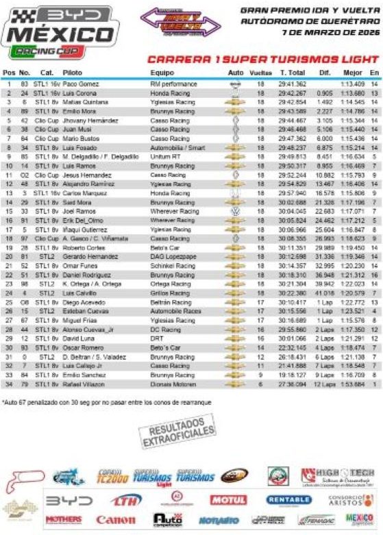 En los STL2 Jerry Hdz., K. Ortega/A. Ortega y Luis Calvillo ocuparon los tres primeros lugares de la carrera uno, y en la carrera dos de nuevo Jerry Hernández quien hoy es líder del Campeonato se llevó de nuevo la victoria, seguido de Luis Calvillo y K. Ortega/A. Ortega.