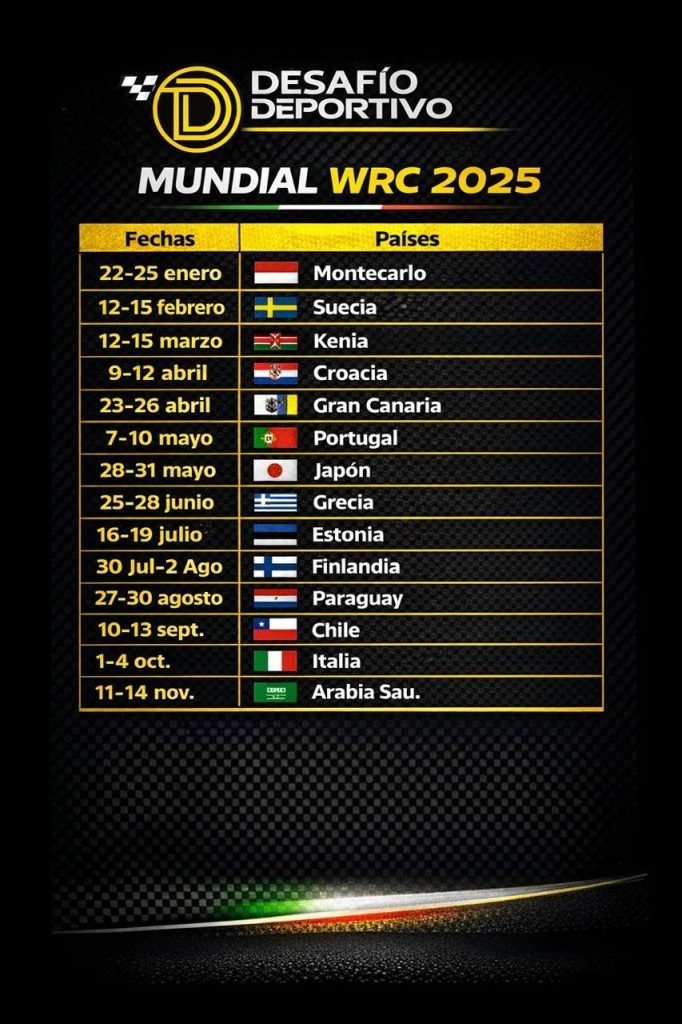Ciertamente, el Mundial de Rallies o WRC 2025 reincide en su número de fechas, catorce pruebas a lo largo de cuatro continentes, Europa, Asia, Sudamérica y Oriente Medio, siendo el único campeonato a nivel global en el automovilismo deportivo que no repetirá ninguna plaza y en el que son varios sus triunfadores, además sus enfrentamientos pueden ser sobre tierra, asfalto, nieve o con lluvia, con lo que el espectáculo está asegurado.
